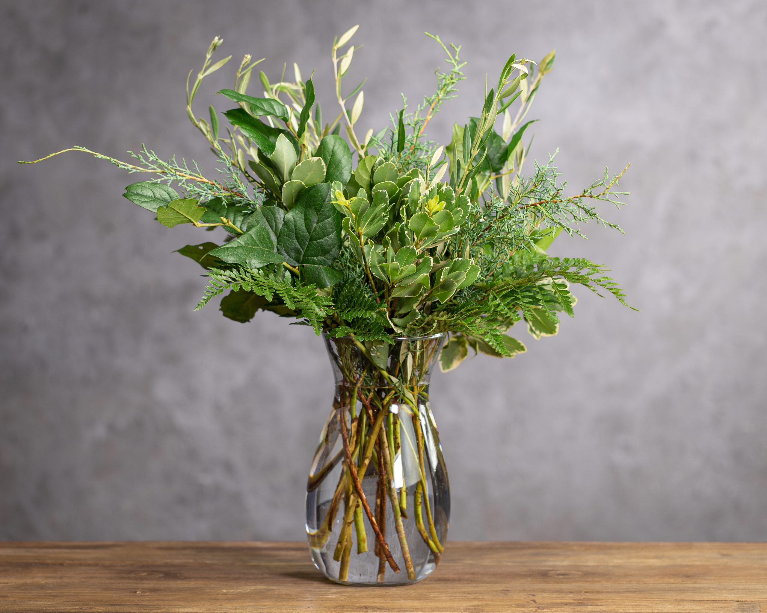 Ingredients: Olive Branches, Carolina Sapphire, Leatherleaf, Variegated Pittosporum & Salal